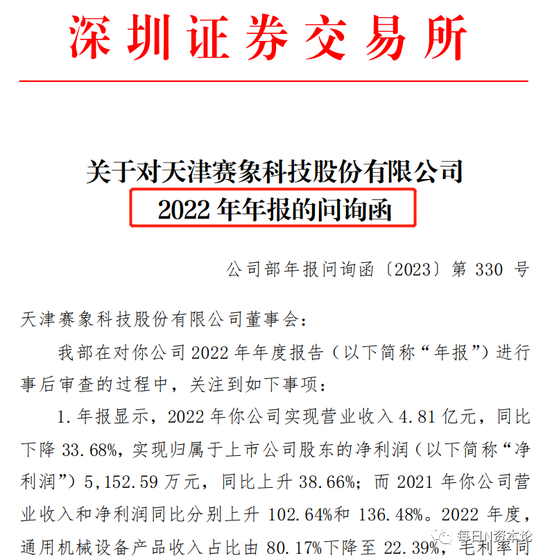 庄家6月19日,深交所向天津赛象科技股份有限公司(下称,赛象科技)下发年报问询函。深交所提议了6大类15个问题,条目赛象科技施展专用机械竖立和通用机械竖立的分离尺度及具体包括的产物品种,施展讲演期市集需求出现较大变动的合感性等。