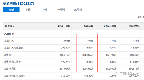 赛象科技的财报自满,2022年,其营收4.81亿元,同比下落33.67%;净利润5152.59万元,同比增长38.66%。2023年一季度,赛象科技营收为2.03亿元,同比大增292.72%;净利润2885.70万元,同比猛增490.74%。